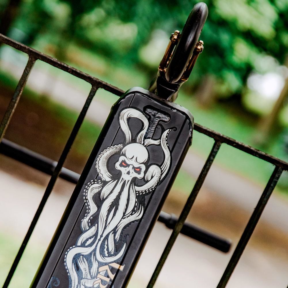 Movino Kraken is a full size competitive scooter intended for street use. The Kraken is equipped with all the features an advanced rider might need: an aluminium fork with the IHC system, integrated headset, large 120 mm full-core wheels, and a solid box-cut deck measuring 52 cm x 12.5 cm.