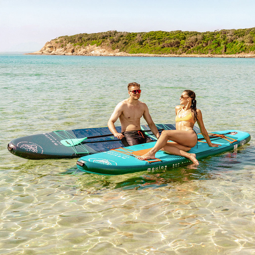 Das Adria bietet eine große, rutschfeste Oberfläche, die auch auf nassem Deck für sicheren Stand sorgt. Du kannst deine Position frei wechseln, das Gleichgewicht üben und komfortabel paddeln.