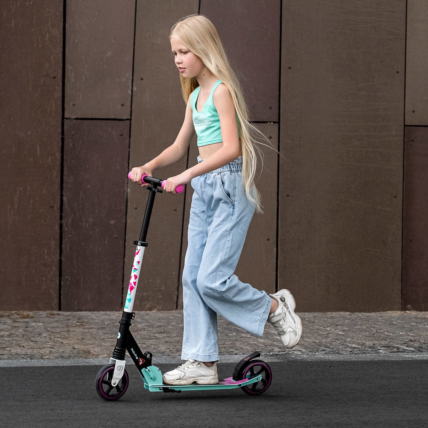 Der erste zweirädrige Roller sollte leicht und an die Größe des Benutzers angepasst sein. In diesem Fall bedeutet mehr nicht besser. Ein zu großer Roller kann das Fahrenlernen erschweren oder sogar das Meistern neuer Fähigkeiten verhindern.